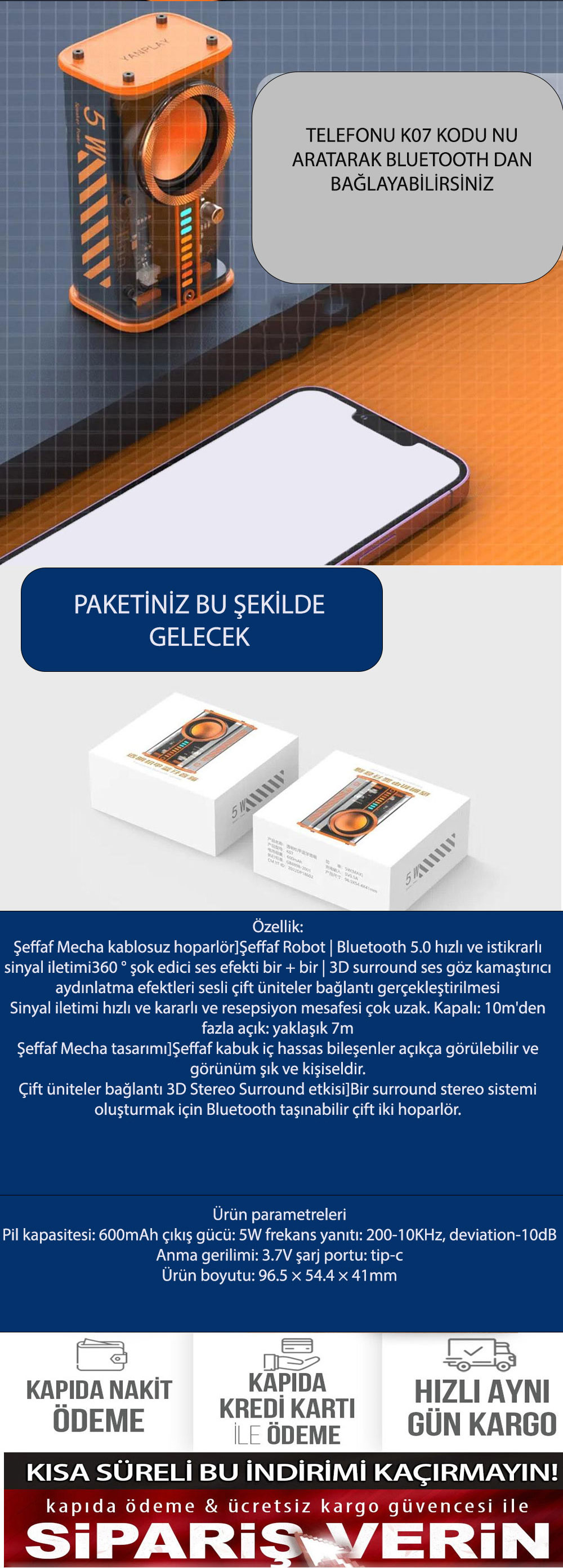 1 Adet Bluetooth Hoparlör(Aydınlatma efektli) -
